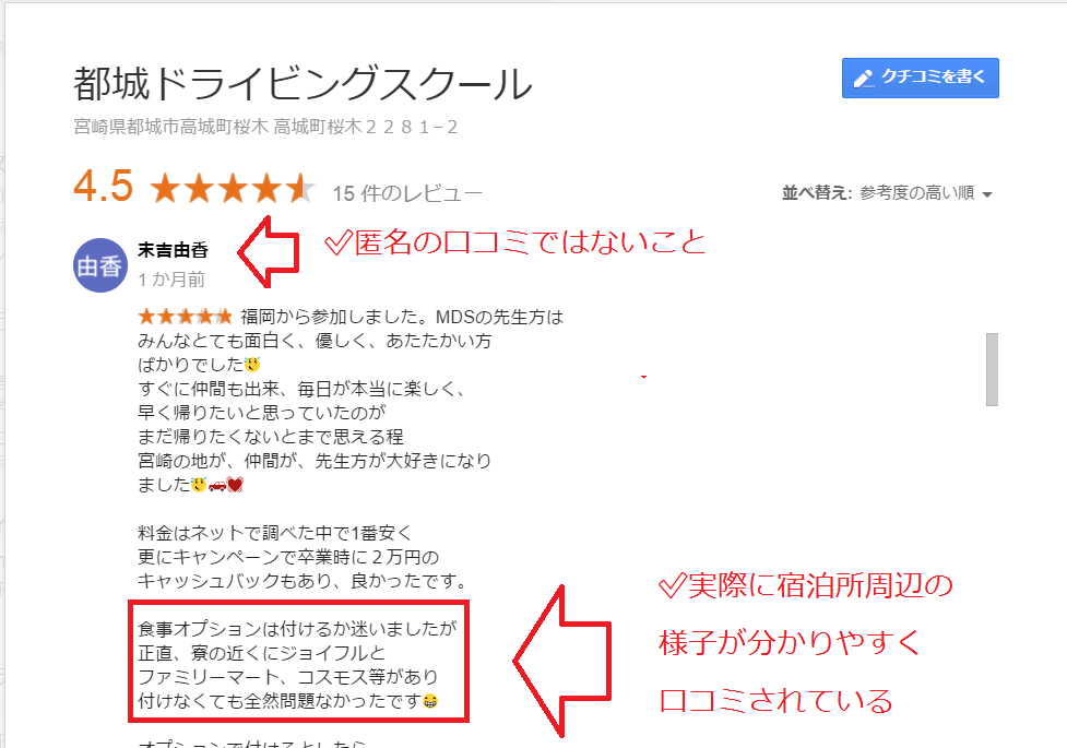・合宿免許の宿泊施設選びのコツは、google検索の口コミをチェック!