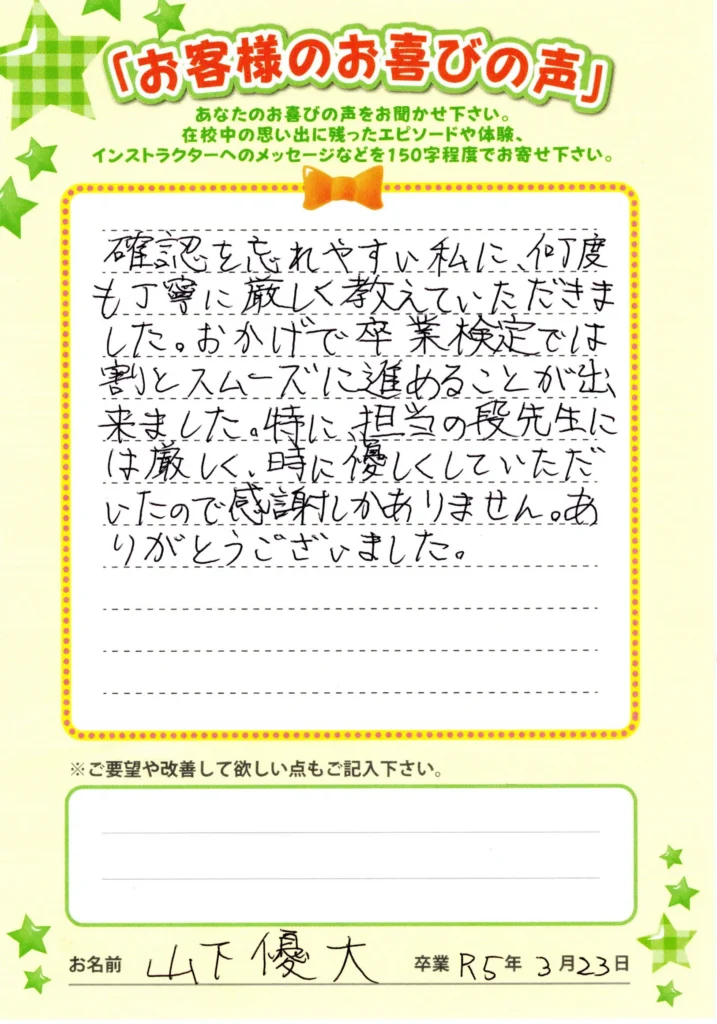 自動車学校お客様喜びの声を頂きました。